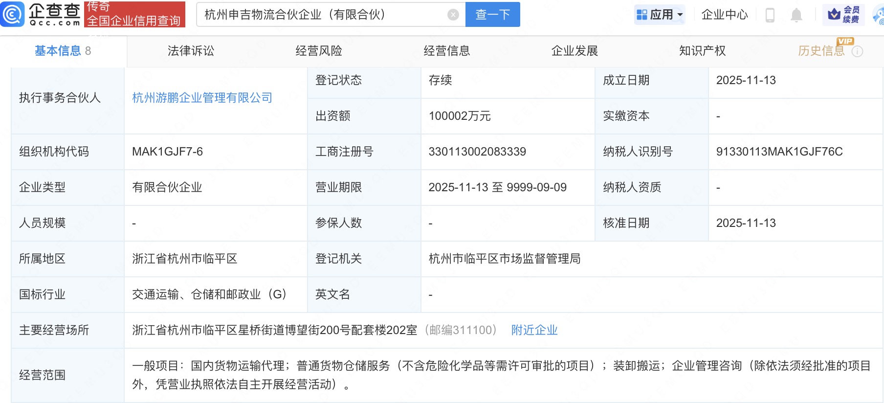 近日,杭州申吉物流合伙企业(有限合伙)成立,出资额约10亿元,经营范围包含:国内货物运输代理;普通货物仓储服务(不含危险化学品等需许可审批的项目);装卸搬运;企业管理咨询。企查查股权穿透显示在线实盘配资炒股平台开户,该企业由浙江菜鸟供应链管理有限公司旗下杭州游鹏企业管理有限公司、中国人寿保险(集团)公司旗下国寿置业投资管理有限公司、吉仓三期股权投资基金(北京)合伙企业(有限合伙)共同出资。