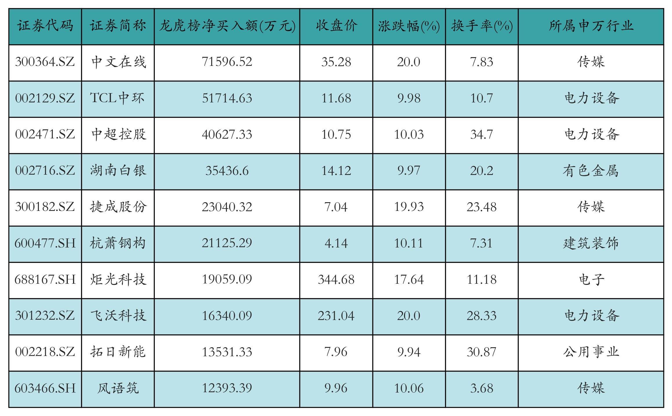 四、龙虎榜情况