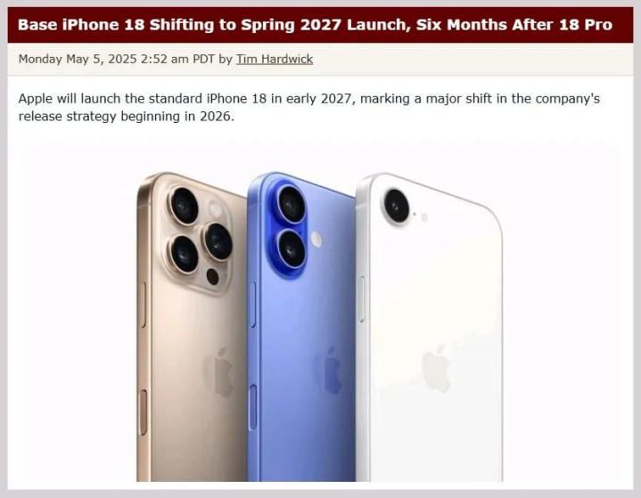 2026年秋季,先推出iPhone 18 Pro系列和折叠屏iPhone;到2027年春季,才推出iPhone 18标准版,以及iPhone 18e。