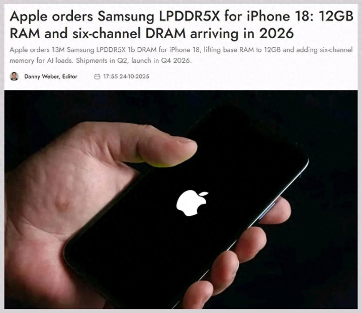 近日,韩媒The Bell报道称,苹果已向三星电子下单了内存芯片,并要求进一步扩大供应量,备战iPhone 18。