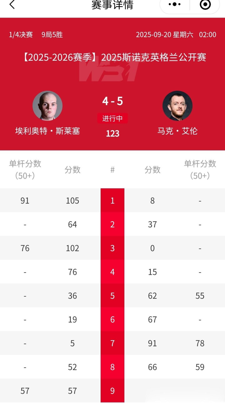 言归正传,艾伦和斯莱瑟的对决开始,9局5胜制,每局必争,不容闪失: