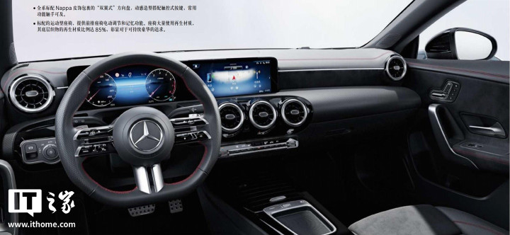 内饰方面,2026款奔驰CLA五门猎跑车配备了双10.25英寸联屏,并搭载了NTG7的MBUX智能人机交互系统。全系标配Nappa皮饰包裹“双翼式”方向盘和运动型座椅。此外,车辆还配备了电动尾门、胎压监测、倒车影像、ACC自适应巡航、全景天窗、自动防眩目内后视镜等配置。