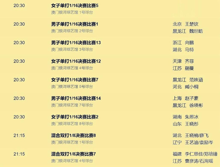 11月10日全运会乒乓球成年组具体赛程情况,请看下文详细介绍。