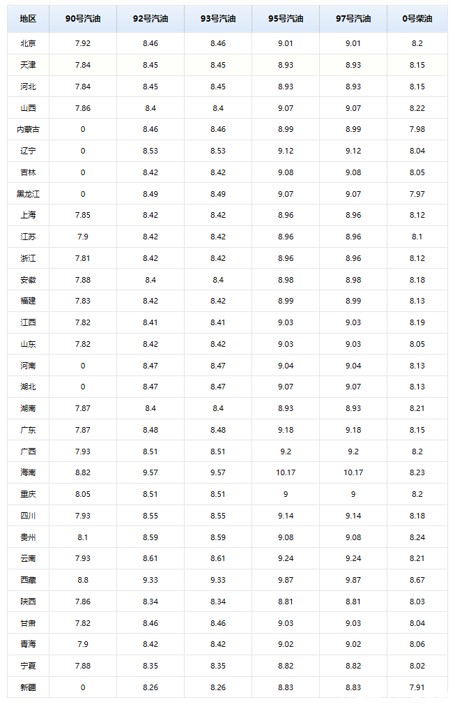 附:全国各地加油站92/95号汽油以及0号柴油