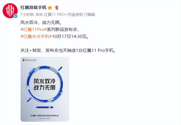 目前红魔也是官宣了 11 Pro 系列将在 10 月 17 日发布;