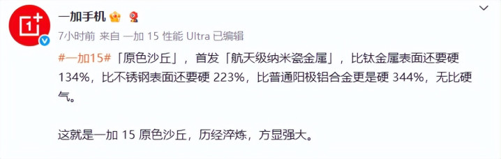 这个指的是新机一加 15 的新配色 ——「原色沙丘」。